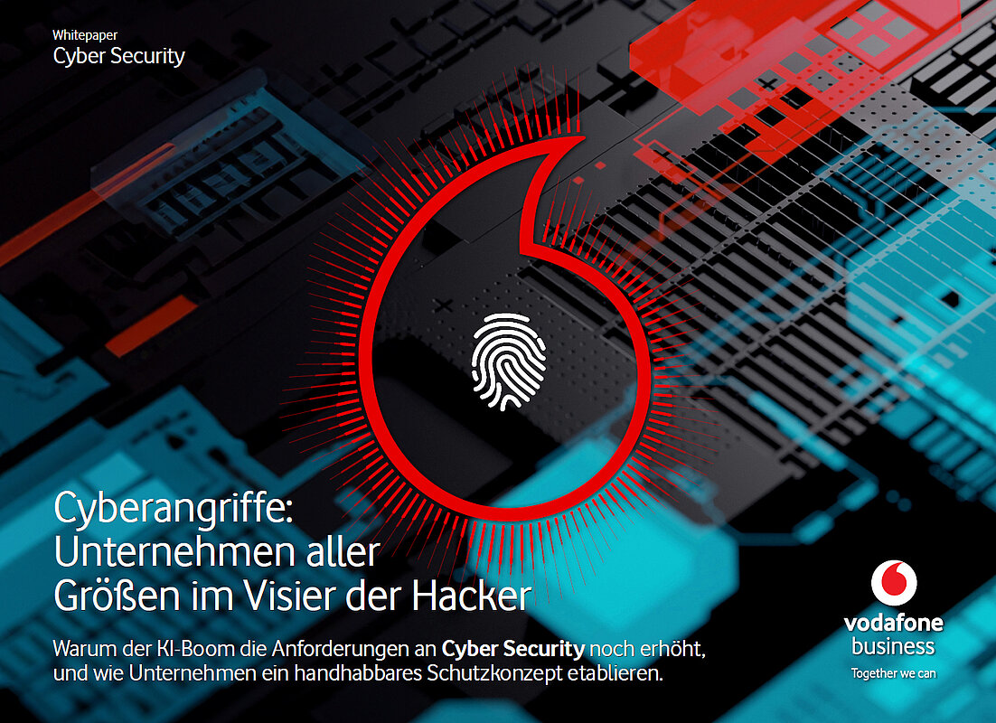 Vodafone Business zeigt euch im Whitepaper Cyber Security warum der KI-Boom die Anforderungen an Cyber Security noch erhöht, und wie Unternehmen ein handhabbares Schutzkonzept etablieren.