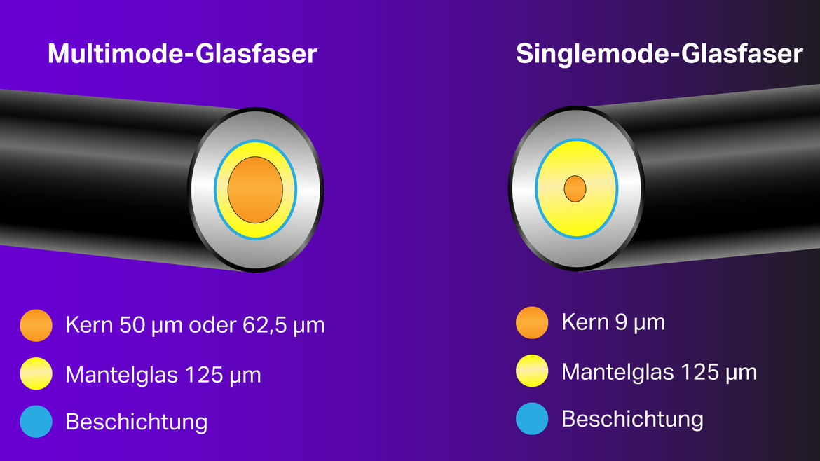 Singlemode (veraltet auch Monomode) bedeutet, dass die Faser die Ausbreitung jeweils eines Lichttyps ermöglicht. Während Multimode-Faser mehrere Lichtfrequenzen ausbreiten kann. Der Unterschied zwischen Singlemode- und Multimode-Faser liegt hauptsächlich im Faserkerndurchmesser, der Wellenlänge, der Lichtquelle und der Bandbreite.